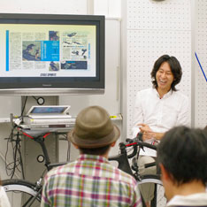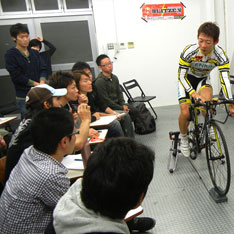 さまざまな特別セミナーを定期的に開催しています。写真左はナンバーワンの自転車雑誌『CYCLE SPORTS』主催のセミナー。編集長とインプレッションライダーをお招きし、自転車の評価の仕方について語っていただきました。写真右はTCDサイクリング部が主催した『チーム右京』の辻選手によるセミナーです