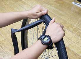 パンク修理の実習と学校説明をコンパクトにまとめたミニ体験です!